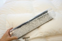 | 長野県北佐久郡にお住いのB様より、「海外で買ったとても大きい108x96インチ(275x245cm)の羽毛布団があるのですが、これを231x231cmの大きさのサイズにオーダーしてリフォームしたいのですが」とリフォームご相談をいただきました。 使用年数は7年位使われておられ、お手持ちの掛けカバーが231x231cmサイズなのでこのサイズに合わした羽毛布団にしたいとのご希望でした。 この特大サイズ羽毛布団をリフォームして、231x231cmのオーダーサイズ仕立てでリフォームをした場合のお見積もりをご紹介して、ご納得をいただけましたので、早速に新しい側生地用の生地サンプルを同封して「梱包キット」をお届けをしました。 |