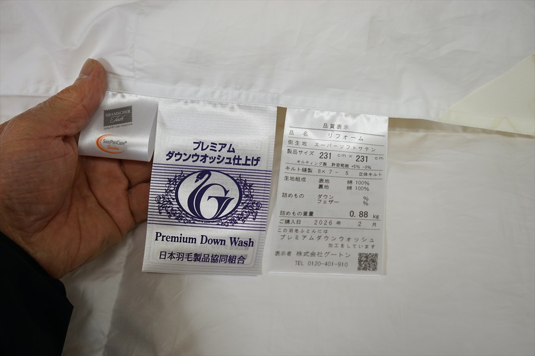 | ・リフォームして仕上がった羽毛布団の品質表示 | |