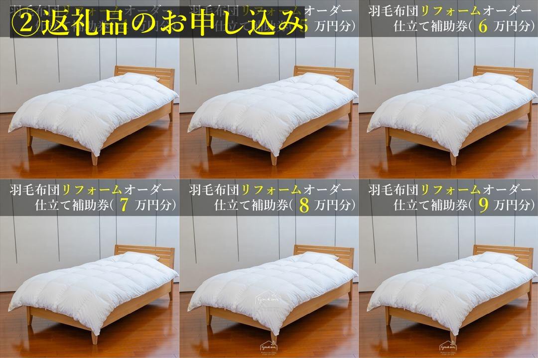 兵庫県尼崎市へのふるさと納税の返礼品として、羽毛布団オーダー&リフォームがお選びいただけます。