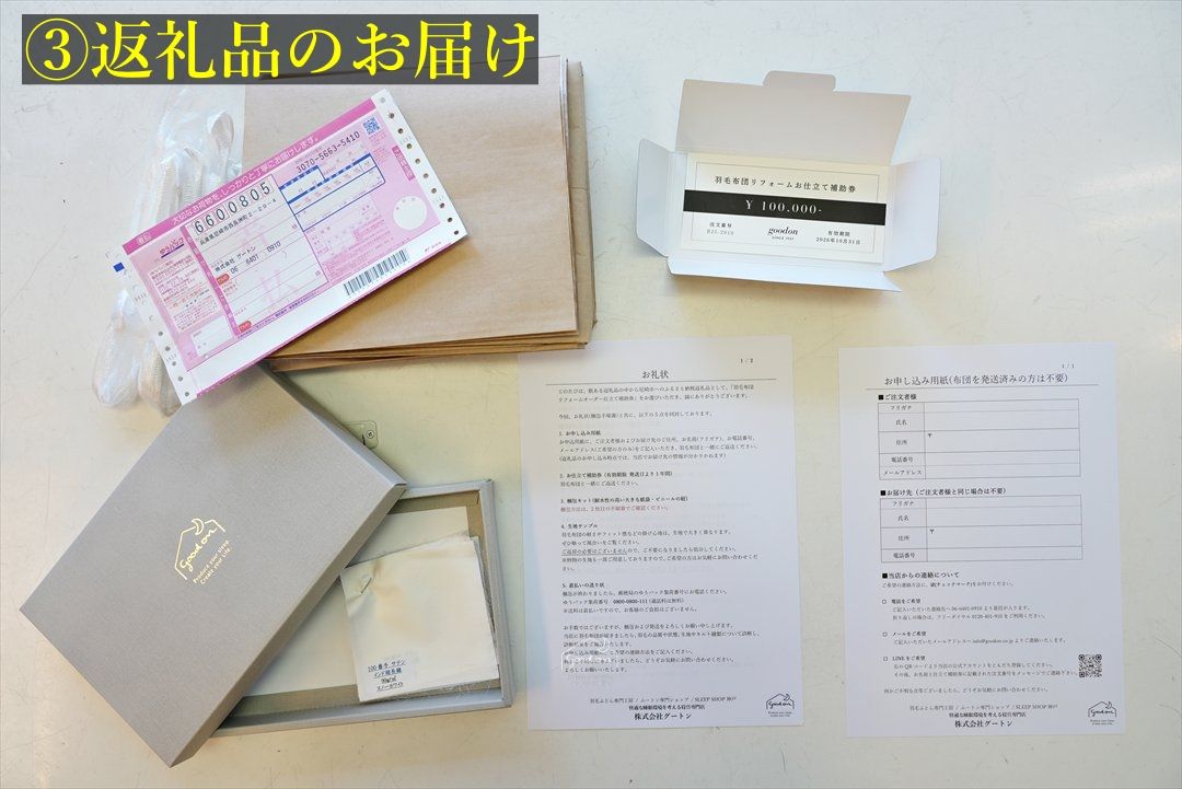 ③返礼品(梱包キット・生地サンプル等)のお届け