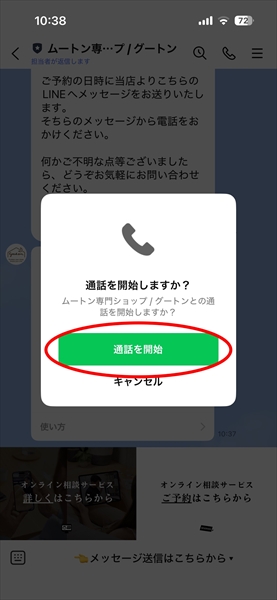 ⑤予約の日時に届いたメッセージでLINE電話をかける