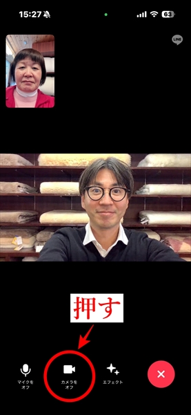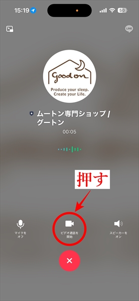 LINE電話が繋がりましたら、「ビデオ通話を開始」ボタンを押してください。