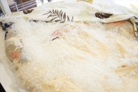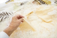 ・プレミアム コース 「プレミアム ダウンウォッシュ仕上げ」 ■加工方法:羽毛布団を先ず解体し中の羽毛を取り出します。 そしてその羽毛を直に水と洗剤とで洗浄後に除塵及び乾燥加工を施して再生させます。 その再生された羽毛を新しい側生地にそ入れて仕上げます。 側生地も新しく縫製しますのでサイズの変更や仕様の変更・枚数の増減などが出来ます。 羽毛の量が少ない場合は、新しい羽毛の種類を選び補充量を決めて仕上げる事も出来ます。 |