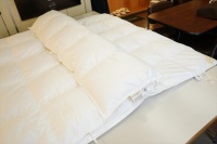 後日、お電話をいただいて、オールシーズン2枚合わせ1組をシングルサイズでポーランド産マザーグースダウン95%を入れて、リフォームの時に見られた80番手サテン地の生地でご購入されることになりました。