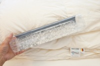 | 届いた羽毛布団は大塚家具さんのダウナシリーズの羽毛布団2枚です。 一枚はクィーンサイズ220x210cmで、ポーランド産マザーグースダウン95%が1.2Kg入りで側生地は超軽ソフトで綿100%の生地が使用されていて、キルト縫製は6x5マスのマチの高さ10cmありました。 生地からは少し羽毛の吹き出しが見られました。四つ折りにした時の高さは35cm程度です。 もう一枚は品質表示の内容は薄くて読めませんでした。 キルト縫製は5x5マス、マチ高さ10cmで、これも生地から羽毛の吹き出しが見られました。 四つ折りにした時の高さは38cmありました。 このクィーンとダブルの羽毛布団をセミダブル合い掛けとシングル本掛けにリフォームにしたい!とメモも同封いただきました。 各羽毛布団より羽毛を取り出して「羽毛の診断」をしました。 両方ともダウンは大きくしっかりと密度も高く羽毛の種類はマザーグースと思われました。 羽毛の傷みはファイバーは少し見受けられましたが、全体的に傷みも少なく傷み度はBCランクと診断しまし、リフォームは充分可能な状態でした。 この診断結果をお客様へ報告をして再度リフォームについて相談をさせて頂きました。 |