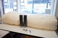 東京都八王子市にお住まいの方よりお電話で羽毛布団をリフォームしたいとご相談をいただきました。 お持ちの羽毛布団は大塚家具さんのダウナ羽毛布団ダブルサイズの2枚をリフォームして、シングルとクィーンサイズの2枚にサイズ変更したいとのご希望でした。 早速2枚用入れ用「梱包キット」をお届けして当社まで送っていただきました。 |