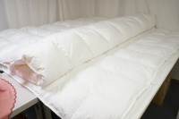 ふるさと納税」を使われて、オーダーメイド・別注で240x220cmサイズで一年中使える2枚合わせタイプの羽毛布団のご注文をいただきました。