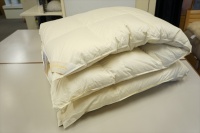 | 羽毛の診断結果をお客様へ報告をして、リフォームをすることになりました。 仕上げの羽毛布団は同じダブルサイズの冬用タイプがご希望です。 羽毛布団を解体して取り出した羽毛量は1.67Kgで、プレミアムダウンウォッシュの洗浄・除塵加工を施して再生された羽毛量は1.36Kgとなりました。 この結果をご連絡をしてさらにリフォームを進め、新しいダブルの側生地は当社一番人気の80番手サテン生地を選ばれて、冬用タイプに仕上げる為に足らない羽毛は、ポーランド産コウダ種ホワイトグースダウン93%を340g足して1.7Kg入りで仕上げることになりました。 |