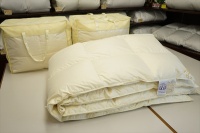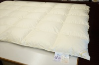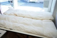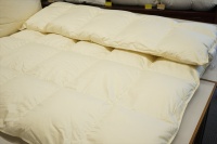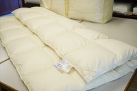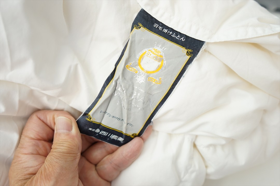 | 診断結果をM様へリフォームが可能なことを報告をして、次に仕上げるシングルサイズの少し薄い目の羽毛布団2枚についてご相談をさせていただきました。 既存の羽毛布団の羽毛がシベリア産のホワイトグースダウン93%の品質でしたら、少し薄い目の羽毛量は900g~1,100gになりますので、2枚でしたらこの倍の羽毛量が必要となります。 もし同クラスの羽毛ランクの羽毛で補充するのでしたら、洗浄加工後に再生された羽毛量が確定してからお決めいただけたら!とご提案をさせていただき、ご了承されたのでまずは洗浄加工をさせていただきました。 羽毛を解体して取り出した羽毛量は1.95Kgで洗浄加工後は1.6Kg仕上がり、この羽毛を二等分してハンガリー産シルバーグースダウン93%を800g足して各1.2Kg入りで、側生地は80番手サテン地の5x6マスにて仕上げることになりました。 |