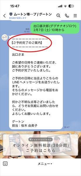 ④予約が完了すると、メッセージが届きます