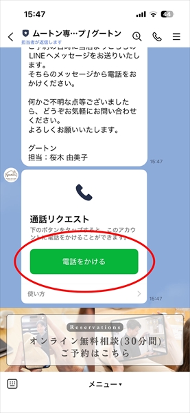 ⑤予約の日時に届いたメッセージでLINE電話をかける