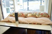 | 同じダブルサイズでリフォームを希望されました。 新しい側生地も同等クラスの80番手サテン生地の無地でクリーム色を選ばれました。 補充羽毛も同等クラスのポーランド産コウダ種ホワイトグースダウン93%で、今回のキルト縫製は当社オススメの6x6・36マスでマチ高さ8cmとして、少し膨らみを抑え羽毛量も100g減らして1.7㎏入りにて仕上げる事になりました。 |