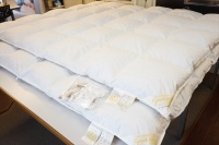 | 同じサイズの羽毛布団を希望されましたので、それぞれセミダブルはセミダブルに、ダブルサイズはダブルで羽毛量はそのままで各々取り出した羽毛量だけで新しい羽毛の補充は無しで仕上げる事になりました。 新しい側生地につきましては、「選ぶ側生地でかなり費用が変わりますが、正直素人には良くわかりません。カバーもつけて使用しますので、80番手平織りとは申しましたが、重さや、柔らかさ、メンテナンス性、丈夫さなどの観点から何がよろしいのでしょうか。」とのご意向から80番手平織(バチスト)でお決め頂きました。 |