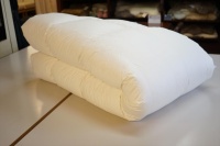 それと別に、シングル1枚をリフォームして1枚の羽毛布団を仕上げて、もう1枚は新しい羽毛布団を新調して2枚揃えた場合の見積もりをさせて頂きました。そうしますと、この2つの見積もりは新しい側生地が2枚分必要なのと、補充する羽毛量もほぼリフォーム時と同じだけの羽毛量が必要となりますので、ほぼどちらも変わらない位のお見積り金額になりました。