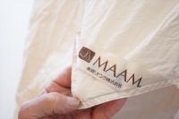 | 送って頂いた羽毛布団を早速に診断をさせていただきました。 羽毛布団は泰道リビング製MAAMで220x210cmのクィーンサイズです。 側生地は綿100%のソフトな生地が使われていて、キルト縫製は5x6マス、マチ高さ7cm程の仕様です。少し生地から羽毛の吹き出しは見られましたが、汚れも少なく破れもありませんでした。 羽毛はピュアホワイトグースのダウン率95%で1.8kgが入っています。 羽毛布団から羽毛を少量1gを取り出して羽毛の状態を確認しました。 ダウンボールから毛切れしたファイバーも使用年数に比べたら少なく、羽毛が絡まった毛玉は少し見られますが、羽毛もしっかりとした大きいダウンボールの状態でリフォームは可能と診断出来ました。 |