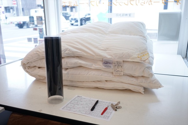 | セミダブル羽毛布団をシングルの羽毛布団と羽毛まくらにリフォーム ・羽毛布団の解体費:セミダブル ¥4,070 ・羽毛洗浄費:1.5kgまで ¥12,100 ・新調の側生地:スーパーライトバチスト ダブル ¥46,530 まくら:80番手サテン/ホワイト色 50x70cm ¥3,740 ・羽毛の充填加工費:ダブル ¥4,400、まくら ¥1,100 ・足し羽毛:無し ■合計金額は、¥71,940.-(税込み価格)となりました。 |