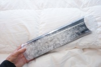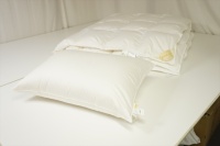 | ダブルの夏用で羽毛量は600g入りです。 側生地はお客様から「できるだけ軽量なものにしたいです。グートンさんのお勧めは?」と聞かれましたので、羽毛の状態も良い事からドイツ製スーパーライトバチストをご紹介させていただき、サンプルもご覧頂きとても気に入っていただきました。 また、枕の側生地は80番手サテン/ホワイト色で、羽毛量は450gでお決めいただきました。 |