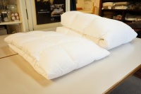 後日、お電話をいただいて、オールシーズン2枚合わせ1組をシングルサイズでポーランド産マザーグースダウン95%を入れて、リフォームの時に見られた80番手サテン地の生地でご購入されることになりました。