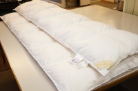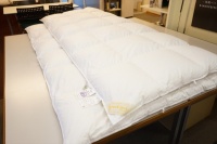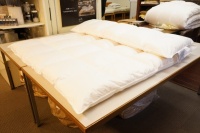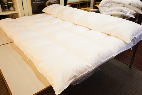 当初のご希望通りこのダブル2枚の羽毛布団を、シングルとクィーンの2枚の羽毛布団に仕上げることになりました。 新しい側生地は、ダウナ羽毛布団をお使いの方にお薦めしている「スパーライトバチスト」をご紹介をして、キルト縫製も当社お薦めのシングルサイズは5x6マス・マチ高さ8cm、クィーンサイズは7x6マス・マチ高さ8cmを提案させていただきました。 お客様は「私はとてもお布団にはこだわりたいの!」と言われて、当社のお薦めスタイルで仕上げさせていただきました。 |