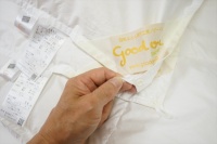 ご注文は★6クラスのマザーグース羽毛布団でしたので、側生地別で3種類のお見積もりをさせていただいて、その中でスーパーソフトサテン地を選ばれました。