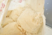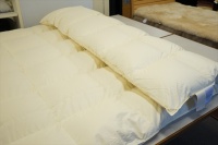 | 羽毛の診断結果をお客様へ報告をして、リフォームをすることになりました。 仕上げの羽毛布団は同じダブルサイズの冬用タイプがご希望です。 羽毛布団を解体して取り出した羽毛量は1.67Kgで、プレミアムダウンウォッシュの洗浄・除塵加工を施して再生された羽毛量は1.36Kgとなりました。 この結果をご連絡をしてさらにリフォームを進め、新しいダブルの側生地は当社一番人気の80番手サテン生地を選ばれて、冬用タイプに仕上げる為に足らない羽毛は、ポーランド産コウダ種ホワイトグースダウン93%を340g足して1.7Kg入りで仕上げることになりました。 |