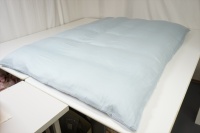 当社のベッドでサイズのご体感をいただいてセミシングルサイズ140x190cmに決められて、羽毛は当社一番お薦めのポーランド産マザーグースダウン95%を選ばれました。