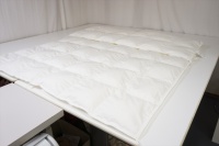 K様はオールシーズン使える2枚合わせタイプを希望されて、羽毛は上質のライオンヘッドグースダウンで、側生地には軽量で綿100%の80番手平織バチスト地をお選びになられて、シングルサイズでお作りをしました。