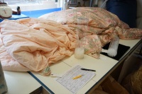 | 広島県、呉市より、10~18年間ご使用のダブルサイズのデュエットタイプ(年中使える2枚合わせ)の羽毛布団がキルト縫製のマチが外れて羽毛が片寄って使いづらいのでリフォームをご希望 | |