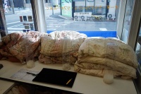 | ・羽毛布団の解体費:シングル@3000、ダブル@4000、計7,000円 ・羽毛洗浄費:2枚一式、22,000円 ・新調の側生地:TN504/SW・PI・BL、@12000x3=36,000円 ・羽毛の充填加工費:シングル@3000x3=9,000円 ・足し羽毛:1350g ホワイトグース90% @3000x13.5=40,500円 ■合計金額は、¥114,500.-となりました。 |