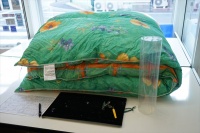 | 今度はセミダブルの冬掛け用に仕立て直しです。 側生地は80番手サテン地E8800で、縫製も2層式ツインキルトではなく、当社オススメの一層式エレガントキルト縫製で仕上げさせて頂きました。 |
