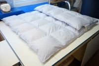 | 愛知県一宮市にお住まいの方よりお電話で羽毛布団リフォームのご依頼をいただきました。 ダブルサイズの冬掛け羽毛布団を、シングルで丈が長い230cmにリフォームしたい。とのご希望です。 |