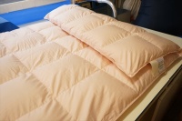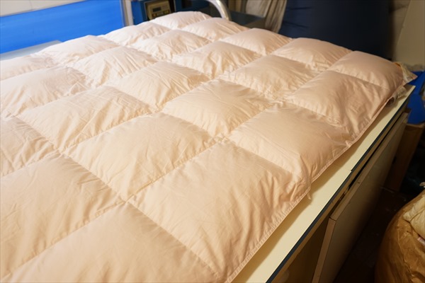 | 今回は「側生地の交換コ-ス」をして、羽毛布団のサイズをクィーンからシングルに変更してリフォームをさせていただきました。 ただ、既存の羽毛布団はポリエステル地を使用していましたので、とても軽くて柔らかい羽毛布団でした。 今回リフォーム後の仕上がった羽毛布団の側生地は、綿100%の60番手サテン生地なので、少しどっしりとした羽毛布団となり少し風合いが違ってきます。 使っていただくと天然素材の綿100%の良さは分かって頂けると思いますが、お客様にはこの点は必ずお伝えしなければならないことだと思いました。 |