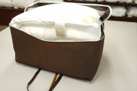 | お客様には、この羽毛布団をプレミアムコースでリフォームをした時のお見積りをしました。 ・羽毛布団の解体費:ダブル¥3500、 ・羽毛洗浄費:¥13000、 ・新調の側生地:80番手サテン地ダブルサイズ¥22000、 ・羽毛の充填加工費:ダブル¥3500、 ・足し羽毛:ホワイトグースダウン90%を600g補充した場合は@¥3000x6=¥18000、 でリフォーム金額は¥60000.-(税別)となります。 新調の羽毛布団を買い替えられた場合、リフォームと同じ側生地を使い、中綿の羽毛をホイトグース ダウン90%を1.7kg入れたエクセルクラスの羽毛布団の価格は¥74,500.-(税別)となります。 この様に羽毛の傷みがある羽毛布団の羽毛をリフォーム加工を施した時は、羽毛ダウンの耐久性も低くて、補充する羽毛量も多くなりリフォーム料金が高くなります。 そして、リフォームして仕上げた羽毛布団は、次回のリフォームは難しく、新調の羽毛布団は10年くらい使われたらリフォームをされてまたお使いいただけると思います。 この違いをご説明をさせていただき、今回はお買い換えになりました。 |