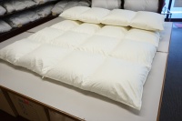 | お持ち込みいただいた羽毛布団はダブルサイズの羽毛布団でしたが、今度はシングルの羽毛布団にされたいとお考えでしたので、当店のエクセルクラスの羽毛布団をご紹介してお考えいただくことになりました。 |
