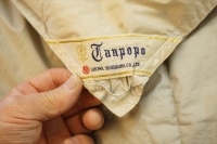 | 大阪市、天王寺区よりご夫婦様で羽毛布団リフォームでご来店頂きました。 「長いこと使っているんですが、リフォームをしたいので見てもらいたいんやけれど…」とのご希望です。 お持ち込みいただいた羽毛布団は、昭和西川製のダブルサイズの羽毛布団で、品質表示はもうかすれて見えませんが、側生地も当時では上質な生地が使用されていて、元はとても品質の高い羽毛布団であった事がわかります。 |