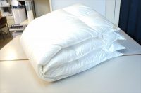冬掛けについてオススメの羽毛ダウンや側生地をご案内した結果、羽毛は当店一押しのポーランド産コウダ種ホワイトグースダウン93%を選ばれて、生地にはインド超長綿「ラムコ」100番手サテン織地をお選びいただきました。